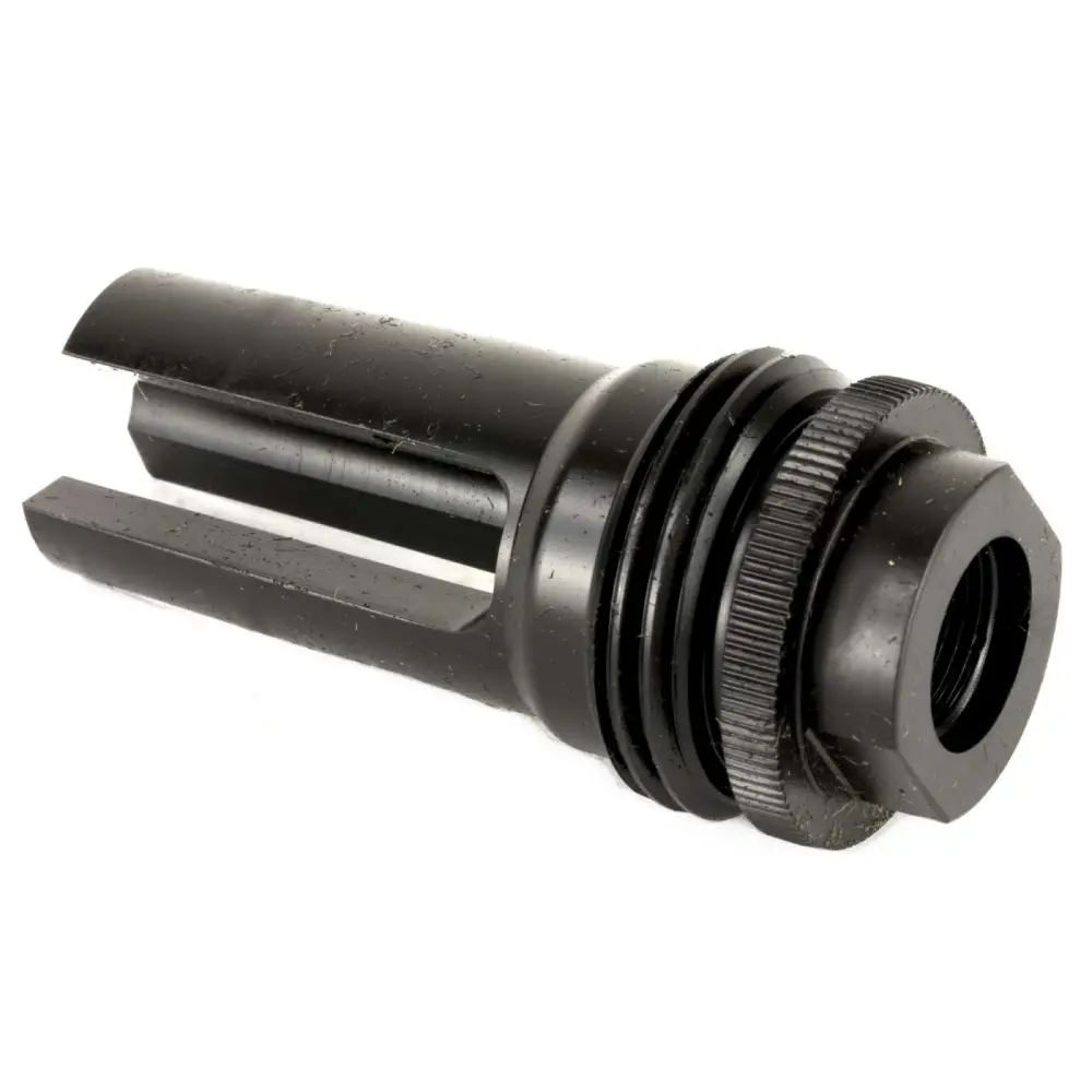 SilencerCo's 3-prong flash hider is compatible with the ASR mounting system. It features a one hand on, one hand off attachment/detachment and patent-pending resonance suppression which effectively eliminates the tuning-fork effect common with competing 3-prong flash hiders. The 3-port muzzle brake design effectively reduces felt recoil and muzzle climb.