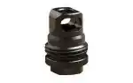 This single port muzzle brake is compatible with all SilencerCo ASR Mounts. It offers quick and easy one-hand-on, one-hand-off attachment and detachment. The 1-port design effectively reduces felt recoil and muzzle climb. Each ASR muzzle brake comes with a shim set and rocksett for easy application.
