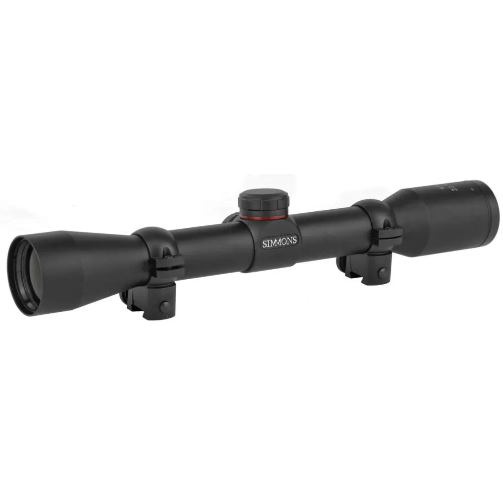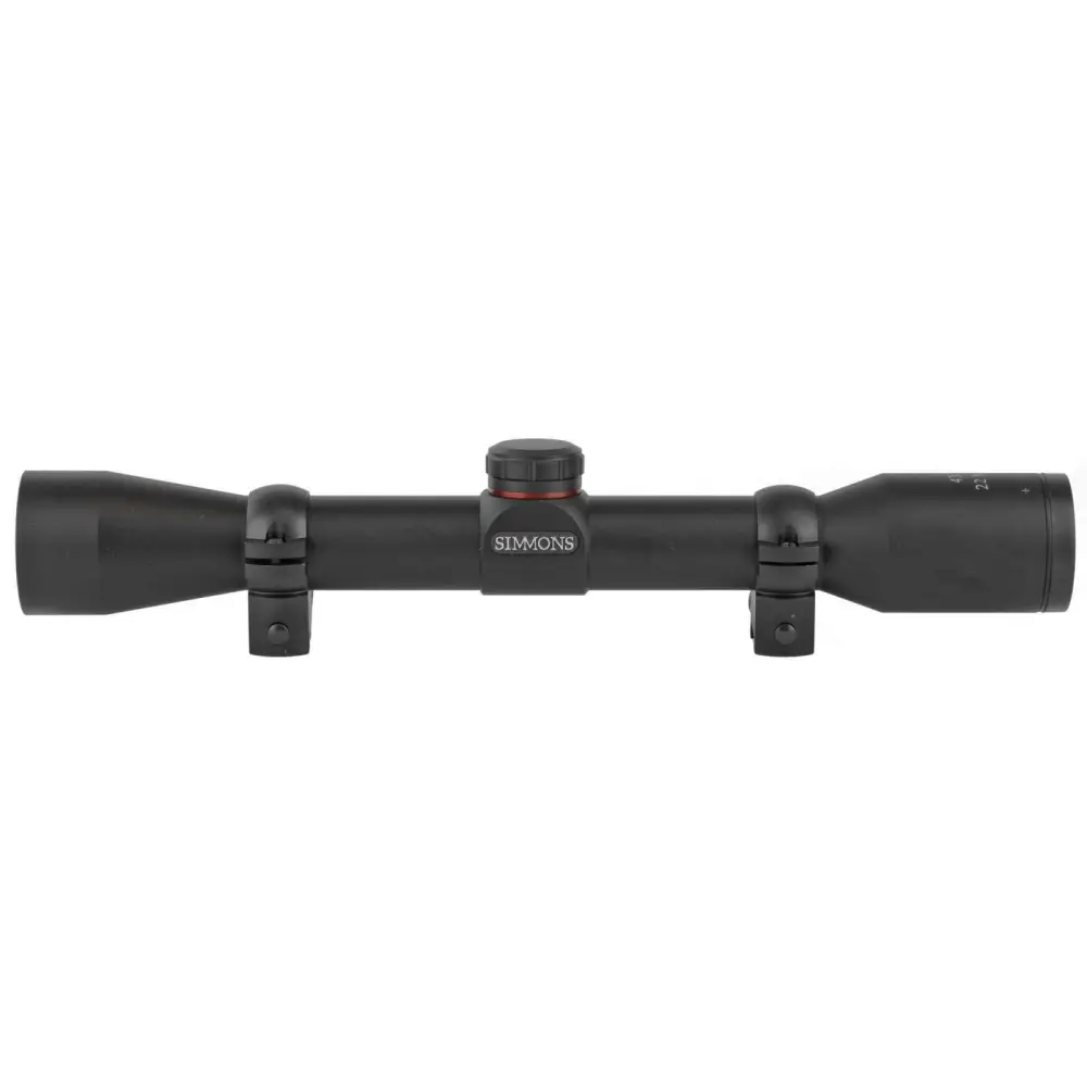 Featuring Simmons patented TrueZero adjustment system and QTA quick target acquisition eyepiece, the 22 MAG series scopes delivers an unparalleled performance. A high quality optical glass and fully coated optics deliver bright, sharp images. HydroShield lens coating helps maintain a clear sight picture regardless of weather conditions, and Simmons SureGrip rubber surfaces make the 22 MAG one of the easiest scopes to adjust under any shooting conditions. It comes complete with a set of rimfire rings to get you up and mounted in no time. This model has a 4x magnification with a Truplex reticle. It also has a black matte finish.