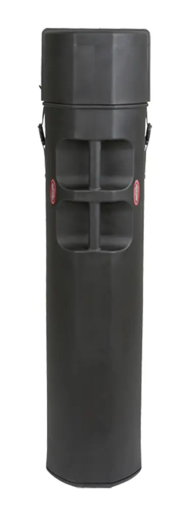 The SKB Roto Top loading 50" Rifle Case is padlockable and provides ideal protection for transporting up to 4 rifles or shotguns in soft bags. Roto molded of rugged Linear Low Density Polyethylene, this case is designed with internal foam in the base and lid to keep rifles/shotguns secure and protected. The case has internal dimension of 50""tall with a diameter of 11", and features a sturdy, high-tension slide release buckle with heavy-duty web straps for easy closure, room on both sides to adhere shipping labels, two molded-in ergonomic carrying handles, and in-line skate style wheels for easy transportation.