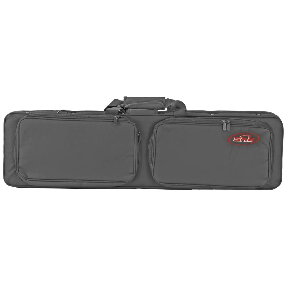 SKB's Hybrid Breakdown Shotgun Case combines the protection of rigid foam, layered with the style and portability of a canvas bag. The exterior is a rugged, weather resistant 600 Denier ballistic nylon with a durable zipper closure, and padlock loops. A hard-core foam interior provides more substantial protection than a conventional gun bag at an affordable price. This case features two external pouches and an adjustable padded shoulder strap. The plush lined EPS interior will accommodate barrels up to 33.75" and offers the same protection as a hard case with a convenient lightweight construction.