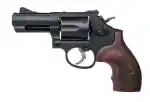 The Performance Center Model 19 Carry Comp is designed for concealed carry and includes a tritium front night sight, custom wood and synthetic boot grips, and a 3 PowerPort vented barrel for recoil management. The revolver features a trigger overtravel stop and Performance Center tuned action for a smooth double-action and light single action trigger pull.
