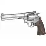 Smith & Wesson's large frame revolver is the first choice for handgun hunters and competitive shooters. The N frame Model 629 Deluxe features elegant textured wood grips, stainless steel frame, barrel, and cylinder, red ramp front and adjustable white outline rear sights. This model has a 6.5" barrel.