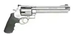 Smith & Wesson Model 460XVR (X-treme Velocity Revolver) features the highest muzzle velocity of any production revolver on the market. With its extra large frame, the 460XVR delivers maximum velocity over 2,300 feet per second. It has interchangeable compensators to accommodate every load and its "gain-twist" rifled barrel is ideal for superb long-range accuracy. This model has a stainless steel barrel, frame, and cylinder. It also has black synthetic grips.