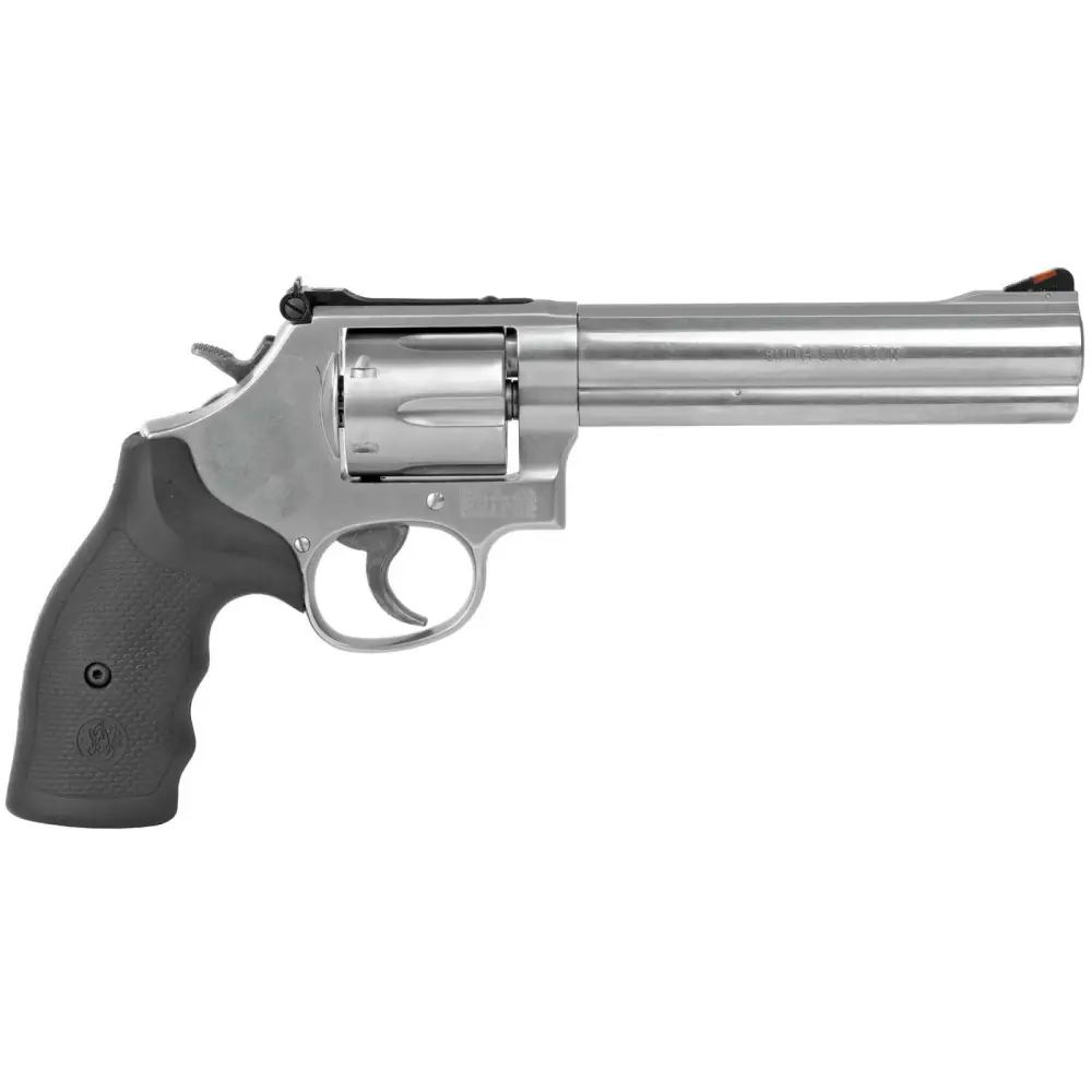 The Smith & Wesson Model 686 revolver is a true workhorse for both duty and sporting use. With a major effect on both law enforcement and sporting markets the 686 has become one of the most popular revolvers ever made. This revolver comes equipped with an internal lock safety, synthetic grips, stainless steel barrel, cylinder, and frame. This model has a 6" barrel.