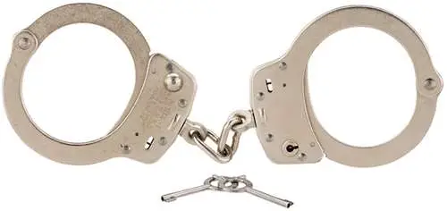 Smith & Wesson Model 104 maximum security nickel finish handcuffs- 2 special keys included. For high risk transfers. Specially designed key and keyhole bushing. Will not open with standard handcuff key. A warded lock and a smaller keyhole greatly increase security. Includes Smith & Wessons lifetime warranty and instructions.