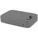 The SnapSafe Lock Box provides secure storage for handguns and other valuables at home, on a nightstand, in the car, or when traveling. It is constructed of thick 16 gauge steel with an easy to operate steel key lock mechanism and protective foam interior. The Snap Safe Lock Box meets TSA airline and California DOJ approved guidelines for firearms storage. It comes with a heavy duty 1500 lb. rated steel cable that secures to any stationary object including a vehicle seat or heavy piece of furniture. Includes two keys that are keyed alike.