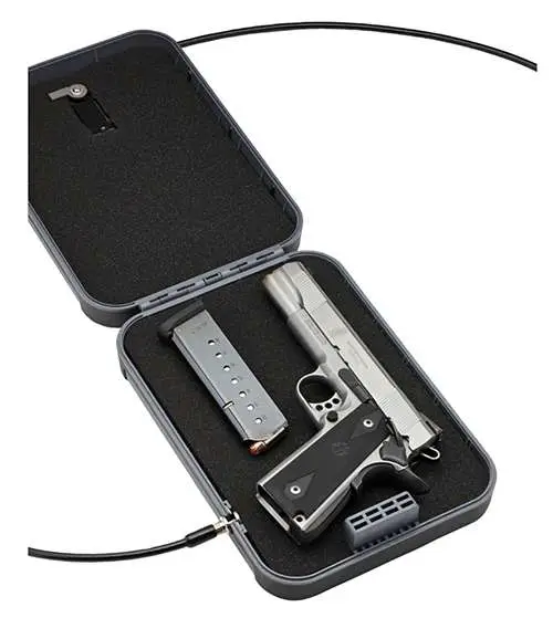 The TrekLite Lock Box offers heavy-duty protection at a third of the weight of steel. It is ideal for storing valuables and easily fits in a drawer, suitcase, or under a car seat. The TrekLite is constructed of an impact-resistant polycarbonate and has durable, non-slip rubber overmold which provides stability and added protection. The foam lining protects valuables from damage and included is a 1500 lb. rated security cable for added protection.