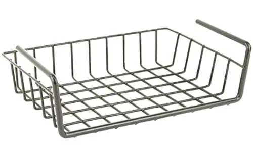 Ideal for gun safes, these coated wire baskets maximize storage for ammo and accessories. Simply slide onto a .5-1" thick shelf. Basket dimensions 12"W x 2.5"H x 9"D. Holds up to 40 pounds.