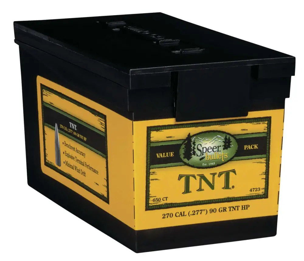Speer TNT gives predator and varmint hunters what they want most - pinpoint long-range accuracy and maximum destruction on impact. Its thin precision jacket features internal fluting to ensure complete bullet disruption, while its high ballistic coefficient produces the flattest trajectories possible. This model comes in a value pack of 650.
