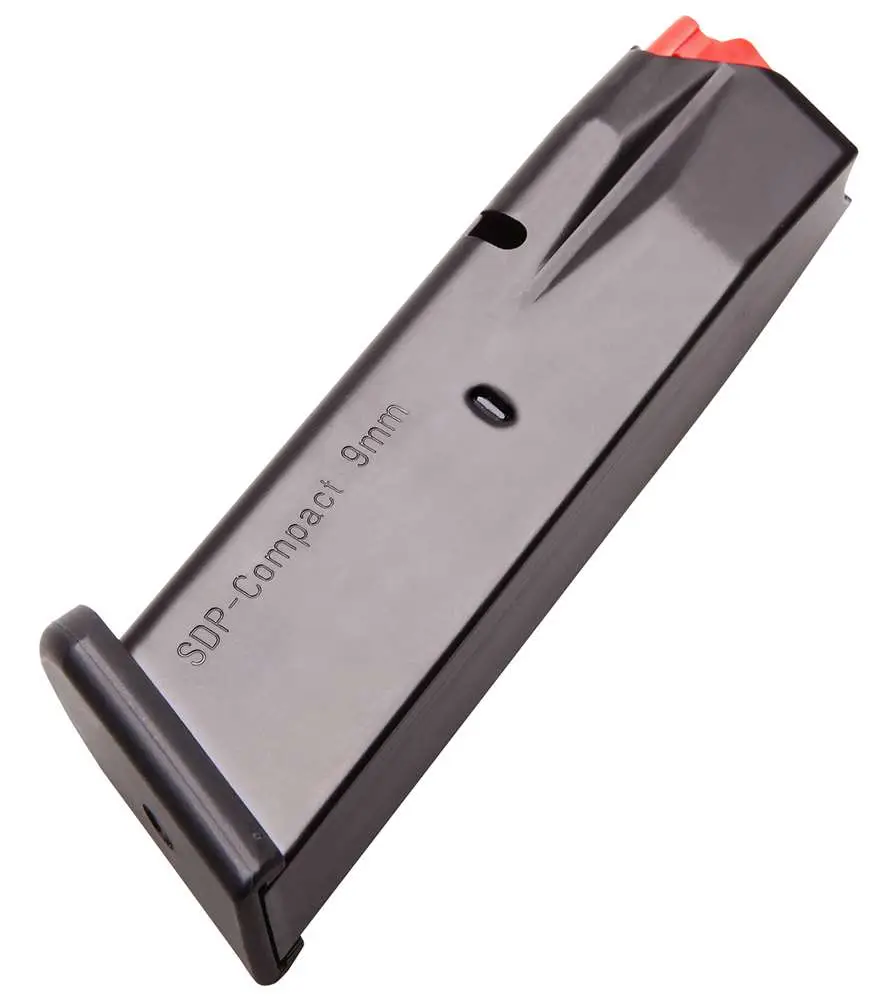 This 9mm Sphinx SDP magazine is made in Italy by Mec-Gar. It is designed for the SDP Compact 9mm pistol. It is compatible with the Subcompact, though it will extend beyond the pistol grip.