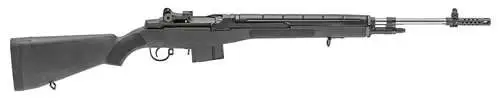 The M1As National Match Grade, 22-inch medium weight stainless steel barrel provides a long sight radius with a 4-groove 1:8 right hand twist and shot-steadying muzzle brake for accuracy. NM Grade .062 post front sight and non-hooded .0520 aperture rear sight ideal for far targets, adjustable for MOA windage and 1 MOA elevation. The 2-stage trigger is NM-tuned to 4.5 5 pounds for a crisp pull. A true 1000-yard rifle that delivers a level of shooting satisfaction few rifles can match, especially when paired with an SA scope mount and your optic of choice.