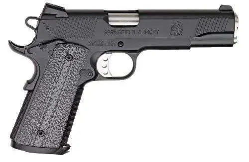 Springfield Armory's 1911 TRP Optic Ready pistol quality starts with the forged national match frame and slide. These are precision fit and then mated with a match grade stainless steel barrel and bushing. The 20LPI checkering on the front strap, checkered mainspring housing and G10 grips will keep this gun in your hands when the sweat and adrenaline are flowing. The crisp 4.5-5lb trigger pull means you can more easily put shots on target when it matters most. Its 3-Dot tritium sights and an extended beveled magazine will remind you that the TRP was designed for use in high stress places where the environment works against target acquisition, and mag swaps have to be lightning fast. The Armory Kote finish protects your TRP so it's ready for the next mission. This model also features an accessory rail for mounting your optics.
