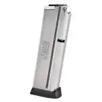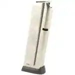 This magazine fits Springfield Armory's 1911 pistol chambered in 9mm.