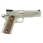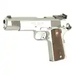 Springfield Armory's Loaded pistol features an extended ambidextrous thumb safety, beavertail grip safety, lightweight delta hammer, and an extended trigger enhance handling and performance in any situation. This model has a forged stainless steel slide and frame, and Cross Cannon double diamond Cocobolo grip. Its barrel is a 5" stainless steel match grade with fully adjustable target sights.