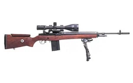 The M21 Long Range Match is the ultimate combination of features and craftsmanship needed to squeeze every bit of accuracy from the M1A platform. Whatever drives your need for extreme precision and power, whether it's providing long-range support for a tactical team or wanting to bring home first place, the Long Range match will excel at meeting that need. The foundation of the M21 is the adjustable walnut stock, which is designed to allow you to customize your experience when you add a scope to the rifle. Its recoil pad and adjustable cheek piece on this stock brings a new level of ergonomics and comfort. The action is glass bedded into the stock, and fitted with a heavy match barrel; the heaviest profile barrel that can fit in the M1A. Note: Scope not included.