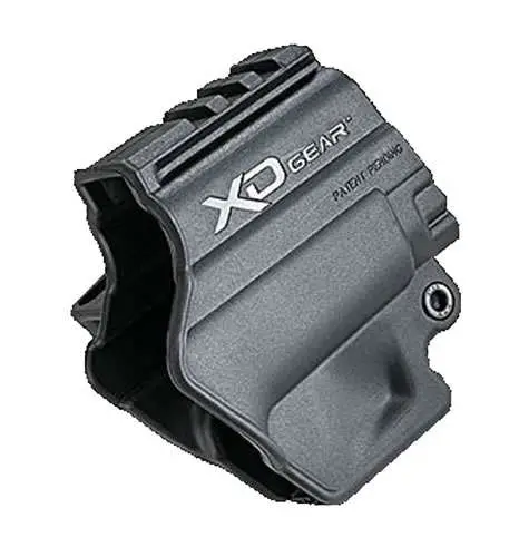 The XD gear belt slide holster has a tough injection molded polymer construction, an integral accessory rail that mounts easily to all XD gear products and an adjustable tension screw.
