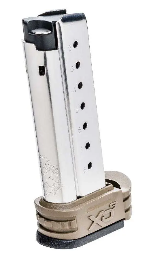 This item is a 9mm 8 round replacement magazine for the Springfield XD-S, with a flat dark earth x-tension.