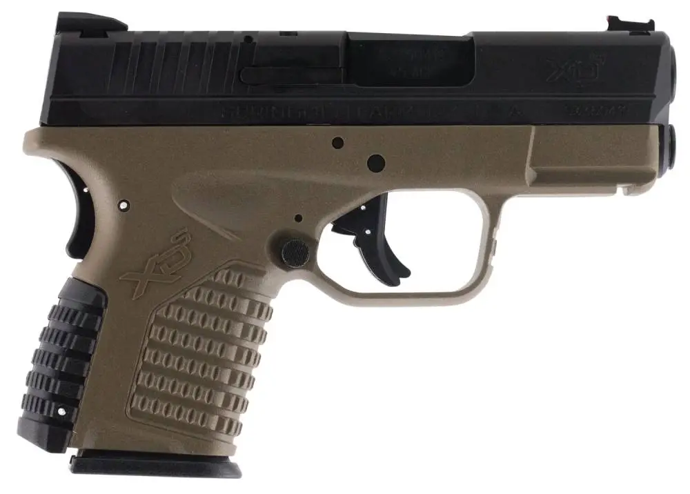 Springfield Armory XD-S 45 Automatic Colt Pistol (ACP) Double 3.3" 5+1 Black Interchangeable Backstrap/FDE Frame Black Melonite Slide