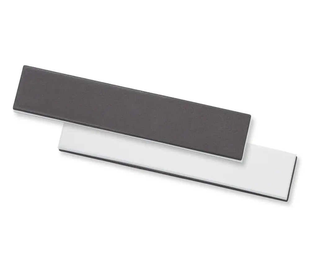 The Doublestuff is the 303F (fine grit) and the 303M (medium grit) bonded together to create a tool with a variety of sharpening options. Use dry, without oil, water or lubricants and clean with a plastic scouring pad and powdered abrasive cleanser. This pocket stone is packaged in a leather carrying case.