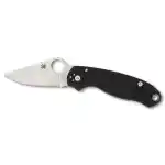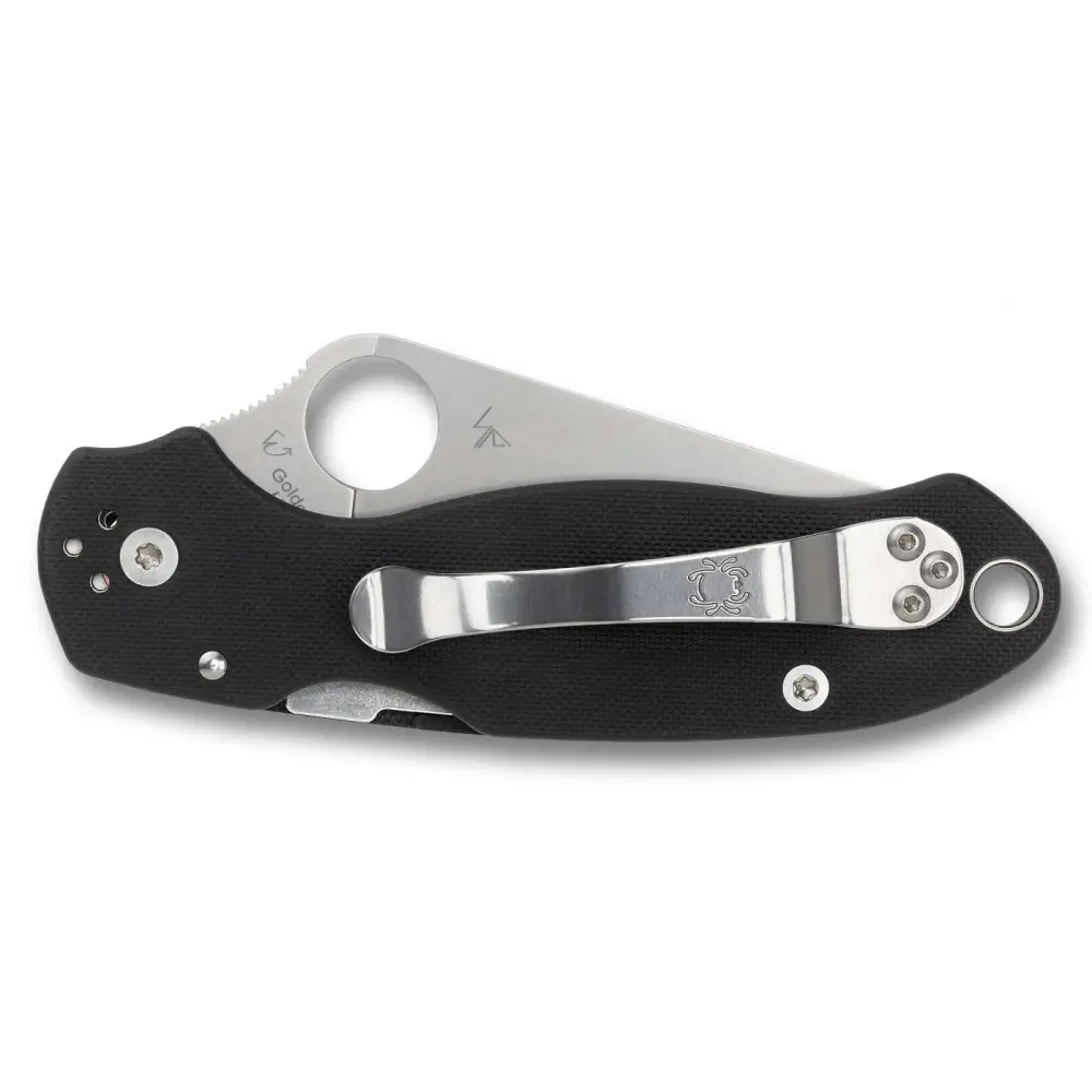 The Para 3 takes all the proven features and benefits of Spyderco's best-selling Para Military2 and distills them into an even more compact all-purpose cutting tool. Its 3" blade is precision machined from premium CPM S30V particle metallurgy stainless steel and features a full-flat grind for a superior balance of strength, point utility, and low-friction cutting performance. It includes a textured index-finger choil and thumb ramp that provide a solid purchase for a forward grip and offer enhanced control during precise cutting tasks. The blade's signature Trademark Round Hole clearly brands it as a member of the Spyderco family and is fully accessible to allow quick, positive, one-handed opening with either hand.