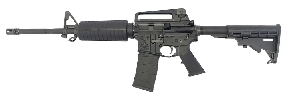 The Stag 15 M4 satisfies the need for a standard GI carbine. Built around a chrome-lined barrel, the M4 utilizes an A2 flash hider to reduce muzzle flash. The carbine-length gas system provides Mil-Spec reliability under any condition and is paired with an A2 front sight. A thermoplastic handguard with a double heat shield provides better heat mitigation. The M4 is finished with the durable A2 pistol grip, Mil-Spec six-position stock, removable A3 carry handle with integrated sight, Picatinny rail, and manganese phosphate coated chrome-lined M16 bolt carrier group. This left hand 5.56 NATO model has a 16" barrel and black hardcoat anodized finish.