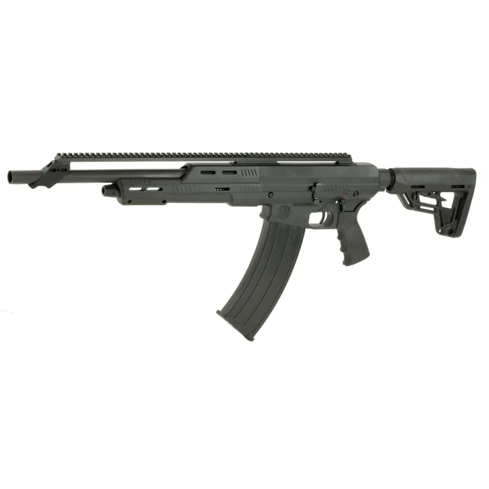 This SKO-12 shotgun features an 7075 aluminum receiver, 18.5" 4140 steel barrel, a 22" rail mount for optics, a black 6-position stock, and a 5-round magazine capacity.