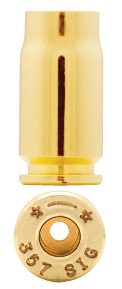 Basically a .40 S&W necked down to accept a .355" diameter bullet. Most pistols chambered for the .40 S&W can be converted to .357 Sig, or complete firearms are available from Sig-Sauer. Cannot be formed out of .40 S&W.