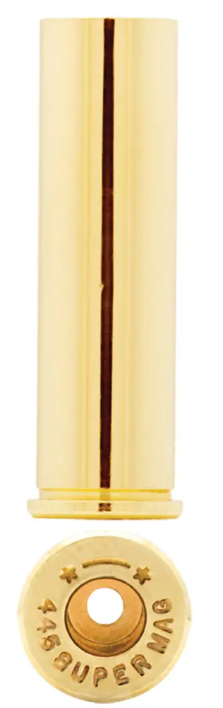 Designed by Elgin T. Gates for silhouette shooting, the .445 Super Magnum is a heavy duty, lengthened version of the .44 Magnum. Primer pocket must be reamed deeper if you wish to use Large Rifle primers.