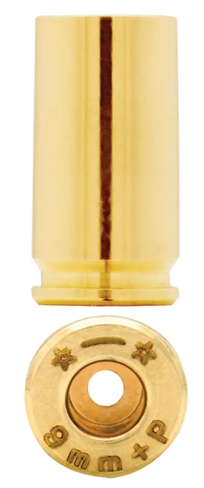 9MM+P has no difference from the standard 9mm Luger other than headstamp designation for load segregation. Due to standard case design, it will handle +P pressures with no problems.