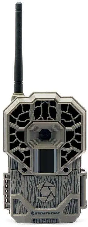 Stealth Cams' GX Cellular Series trail camera features smart illumination technology, 42 NO GLO IR emitters, and HD video recording up to 5-180 seconds with audio. It has adjustable PIR, .5 second reflex trigger, GEO-TAG GPS tagging, matrix advanced blur reduction, and Retina low light sensitivity. The camera utilizes burst mode of 1-9 images per triggering, re-writable SD memory, video and USB output, and manual shot capability. It operates on 12 AA batteries and comes with an external power jack for a 12V battery box.