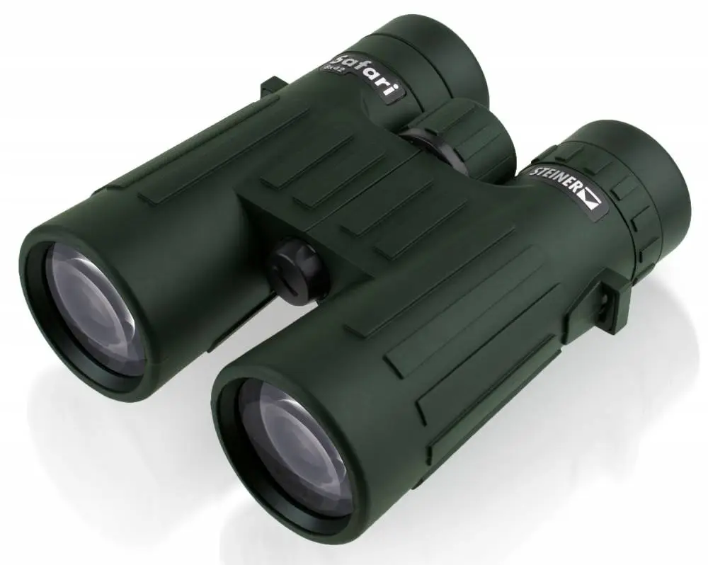 Steiner Binoculars allow more light through the lenses, which makes for a sharper image and is critically important in low-light military situations. The combination of premium Steiner glass and proprietary lens coatings results in a viewing experience that is second-to-none. All lenses are multicoated, with a variety of specific coatings which enhance light transmission and provide ultimate protection against dirt, dust and all of Mother Nature's element. For absolute fogproof and waterproof protection, Steiner seals 14-psi pressurized dry nitrogen into its optics, for premium clarity in any condition. The Safari is a featherlight weight, high performance binocular small in size and features razor-sharp images. It has high-contrast-optics which provides bright, brillant views, accurate colour and clear images with high contour sharpness for exceptional performance up to close range of 2m. The ergonomic design with rubber armoured protruding controls provides comfortable and silent observations with effective sound absorption and cylindric rotation eyecups are made of soft, skin-friendly and non-aging silicone. This model has an 8x magnification and 42mm objective.