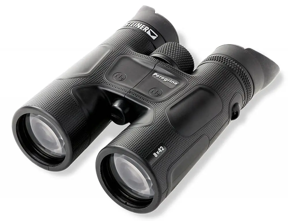 Steiner's Peregrine binocular features phase coated high contrast lenses with a fast close focus and distance-control system for rapid view. It utilizes a rubber-armored Makrolon housing that is waterproof, fogproof, and shockproof.