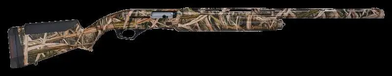 Savage's Renegauge features 2 3/4-3" chamber, Mossy Oak Blades full camo, synthetic stock & forend, adjustable stock for LOP and comb height, adjustable drop & cast, red fiber optic front sight, vent rib, fluted barrel with Melonite finish, lightweight bolt carrier, oversized controls, full, improved cylinder and modified chokes included.