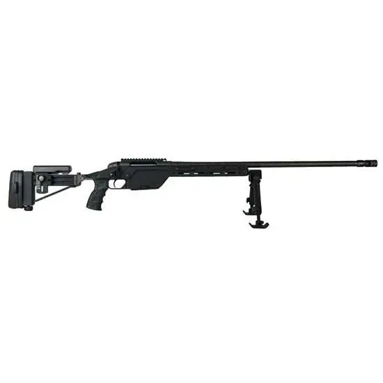 The Steyr SSG 08 is a high-precision, high-performance rifle that was designed to the specifications of Austria's EKO COBRA anti-terrorism unit and developed for professional applications in demanding environments. Each SSG 08 is built on a system that includes a folding hard Eloxal-coated aircraft-aluminum stock with an adjustable rear monopod, a cheek piece that is vertically and horizontally adjustable, and a recoil pad that is horizontally adjusted by adding and removing spacers and vertically adjusted by sliding the pad itself up and down. The pistol grip is configurable with a choice of interchangeable back straps to adjust for hand size and optimized grip. The action is topped with a 20-MOA Picatinny rail, while the forend allows for short Picatinny rails on both sides. The underside of the stock also houses a UIT rail for the addition of accessories such as a handstop. A newly designed bi-pod is included, and the entire platform is in a black finish.