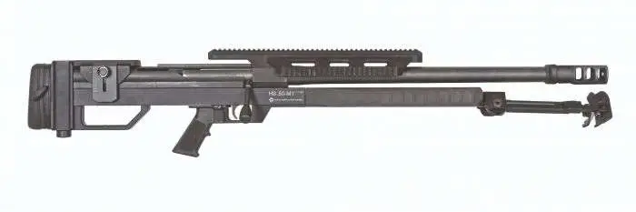 The Steyr HS .50-M1 is a heavy-hitting rifle built for a new era of long range shooting. The free-floating barrel is cold-hammer forged, providing consistent accuracy when launching .50 caliber BMG rounds at an effective range of up to nearly 1,650 yards. An important feature of the HS .50-M1 is the ability to quickly assemble and disassemble the weapon platform. This allows for very rapid deployment as well as breakdown. The barrel-mounted scope also increases the speed of assembly, ensures accuracy between uses and also allows for quick conversion of specialty optics for a wide range of applications. The chassis of the rifle includes a pistol grip, a newly designed bipod, and a stock that features a screw-adjustable monopod in the butt of the stock with an adjustable spike. The recoil pad can be adjusted vertically as well as for length of pull and an adjustable cheek piece allows for ideal cheek-weld.