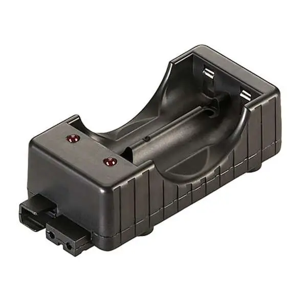 This item is a 18650 lithium ion battery charger by Streamlight. The charger features 2 charging bays, with a single bay priority to speed up the charge time.