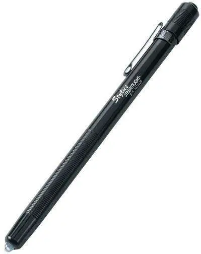 Streamlight's Stylus is a bright, long-running LED penlight that has a long battery life, and goes anywhere you need it. It is machined from an aluminum case with non-slip knurled grip with a removable pocket clip and anodized finish. It features momentary blink or constant "on" operation and is water resistant. This Stylus has a black anodized finish with a white LED bulb and uses three (3) AAAA size alkaline batteries.