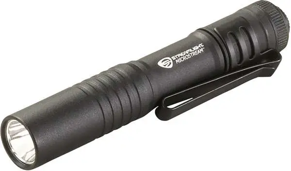 Streamlight's MicroStream is so small, you can keep it in your pocket or clip it to a cap for hands-free lighting. It is made from abrasion and corrosion-resistant anodized aluminum with an unbreakable lens, C4 LED bulb, and a push button tail switch. Included is one (1) AAA alkaline battery and a removable pocket/hat clip.