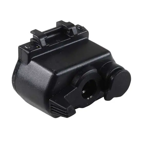 Remote switch battery door for TLR series is a battery door/switch with an integrated remote connector. It is compatible with TLR-1, TLR-2, TLR-1 HP, and the TLR-1 Gamespotter. It retains the momentary/lock on feature of the original paddle switch and has a rubber weather cap to keep the connector dry when the remote is not in use. This switch replaces the standard battery door/switch and has a rotating quick disconnect plug with an o-ring seal.