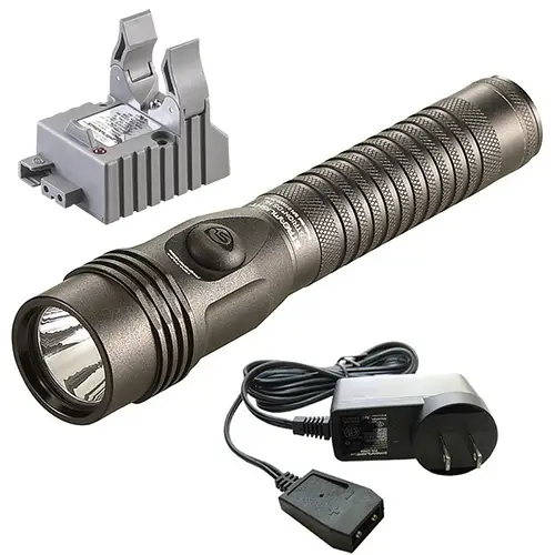 The Strion LED Rechargeable flashlight is a druable, andoized aluminum flashlight with a 700 lumen output. This 3 setting flashlight (High, Medium, and Low light) has rechargeable capabilities, and is great for any setting.