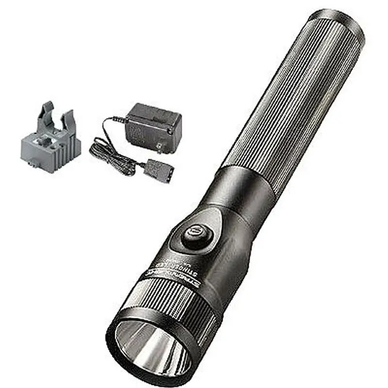 The Stinger LED delivers the optimal balance of performance and value with the longest run time in the Stinger family. It is machined from aluminum with non-slip rubberized comfort grip, anti-roll rubber ring, and unbreakable polycarbonate len with scratch-resistant coating. The C4 LED technology, is shock-proof and features a deep-dish parabolic reflector which produces a concentrated beam with optimum peripheral illumination. It features four operating modes: high, medium, low, and strobe. The Stinger LED also has multi-function push-button switch and uses 3-cell,3.6 Volt Ni-MH sub-C, rechargeable battery. Included is a snap-in charger holder and 120V AC Smart Charger.