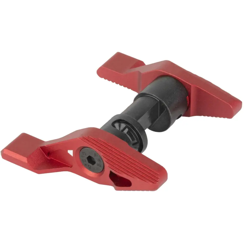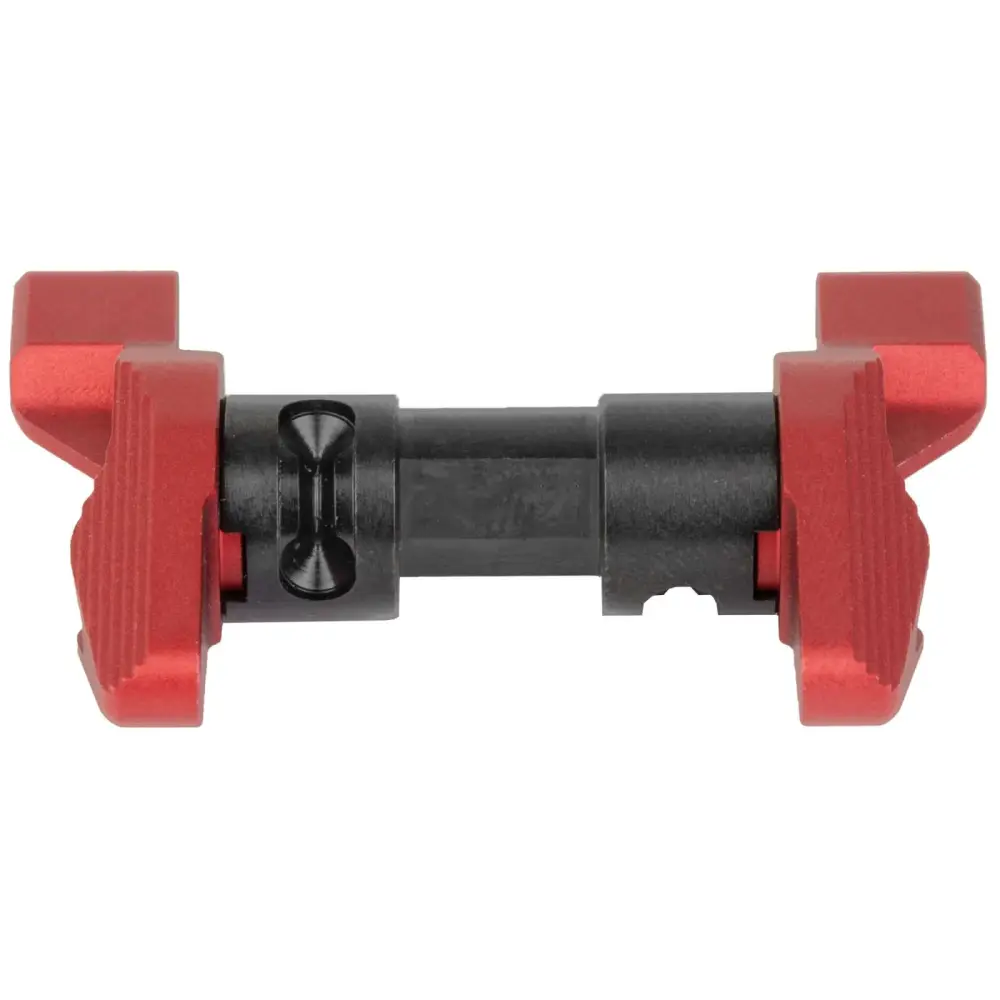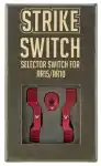The Strike Switch is a patent pending modular safety selector designed from inception using human factor considerations to aid positive on safe, on fire manipulations. The unique toggle action allows one to quickly engage the safety when moving positions without altering the firing grip. The extended lever arm serves as an index point and thumb rest in either position. Adding to the modularity, the Strike Switch is end user configurable to use a 60 or 90 Degree throw, left hand, right hand, or ambidextrous configurations. The levers are machined from lightweight, but strong aircraft grade aluminum for weight savings, while the safety shaft itself is machined from high strength steel for a lifetime of use.