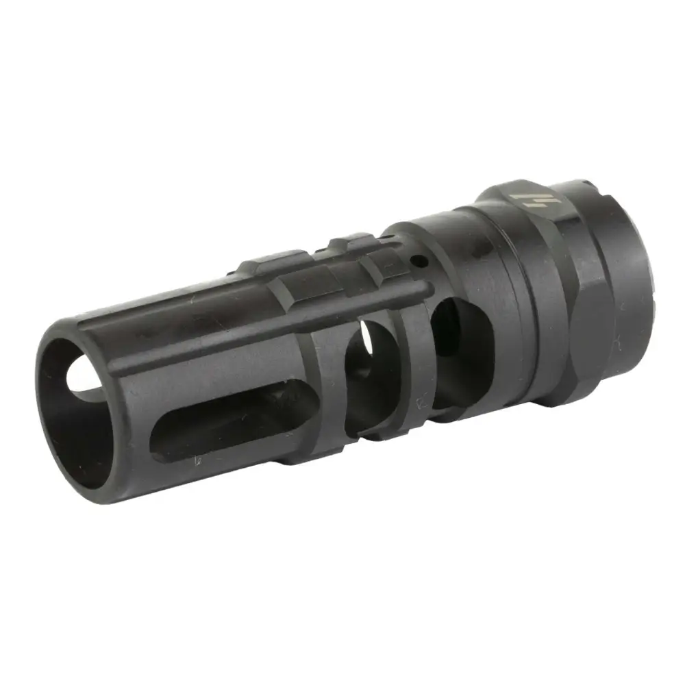 The SI JCOMP V2 is the classic Japanese assault rifle Type 89 compensator re-engineered and updated. It has an increased muzzle rise compensation, and is compatible with Oppressor and FerFrans concussion reduction devices.