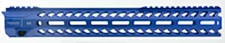 Strike Industries' Strike Rail is a lightweight, but feature-packed rail that you can depend on when entering harm's way. Its .57" internal diameter is for a suppressor or Oppressor compatibility. The rail is M-Lok compatible, has a built-in anti-rotation feature in the rail, ambidextrous QD socket placement, and reinforced steel mounting nut and bolt. It is not compatible with most gas piston systems. This 15.5" model has a blue finish.
