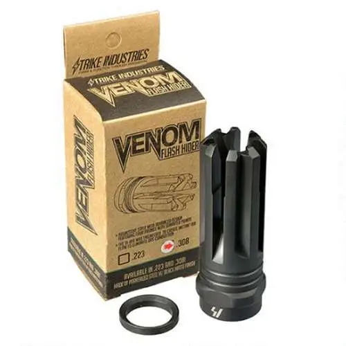 The Venom Flash Hider nearly eliminates 100 percent of your muzzle flash and quickly disperses the burning gases exploding from the barrel. The four prongs on the end of the brake are designed to protect the muzzle crown.
