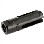 The 3P Eliminator three-prong flash hider, fits M4/M16 weapons and variants with 1/2x28 muzzle threads. It features a patent-pending design that greatly reduces muzzle flash typically greater than 99 percent when compared with a plain muzzle. Precision machined from US mill-certified steel bar stock including high-precision single-point cut threads for optimum thread interface the SureFire 3P Eliminator muzzle brake has a black Melonite finish that provides maximum protection under harsh environmental conditions and facilitates cleaning even after extreme use.