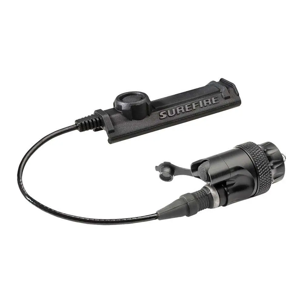 The DS-SR07 is a waterproof switch assembly for SureFire's Scoutlight WeaponLights. The switch has a system disable feature, click on/off pushbutton switch, and a plug-in SR07 switch assembly with a 7 momentary-on and click on/off remote tape switch. The integrated pushbutton and remote switch assembly operate independently, providing switch redundancy.