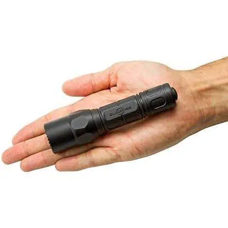 The SureFire G2X Pro flashlight is a compact yet powerful polymer-body flashlight that uses a high-efficiency LED to provide two light output levels: a brilliant, penetrating, perfectly pre-focused 320-lumen beam and a 15-lumen low-output setting that allows for extension of runtime per set of batteries. The polycarbonate microtextured reflector delivers a comparatively wider beam with generous peripheral light. The tough Nitrolon polymer body is smoothly sculpted for a comfortable, secure grip, and it resists scratches, abrasions, and corrosion. The tailcap switch is pressed for momentary-on low and clicked for constant-on low. After returning to off, the switch can be pressed or clicked again within 2 seconds for high.