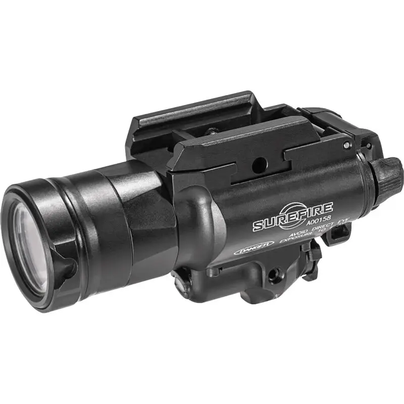 The X400 Ultra WeaponLight with Green Laser was created to interface with SureFire's revolutionary Masterfire Rapid Deploy Holster. It features a unique bezel with cam slots, and pin slots on both sides of the body, that lock the light into the holster, securing the weapon at an advantageous angle for quick deployment. It is also designed to automatically activate when the weapon is drawn from the holster. This model has a recoil-proof LED covered with a proprietary TIR lens that focuses 600 lumens of light into a smooth, farther-reaching beam with a large central spot. The 5 mW / 505 nm green laser sight is highly visible to the human eye and rarely needs re-zeroing.